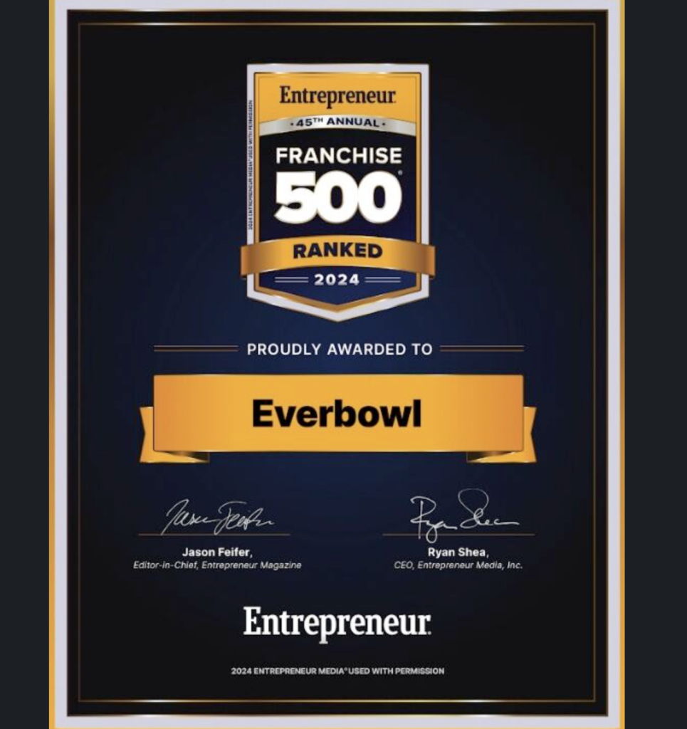 Get ready to launch your Everbowl franchise in 2024! Everbowl has been recognized and ranked in the Franchise 500, making it a highly sought-after opportunity for aspiring franchisees.
